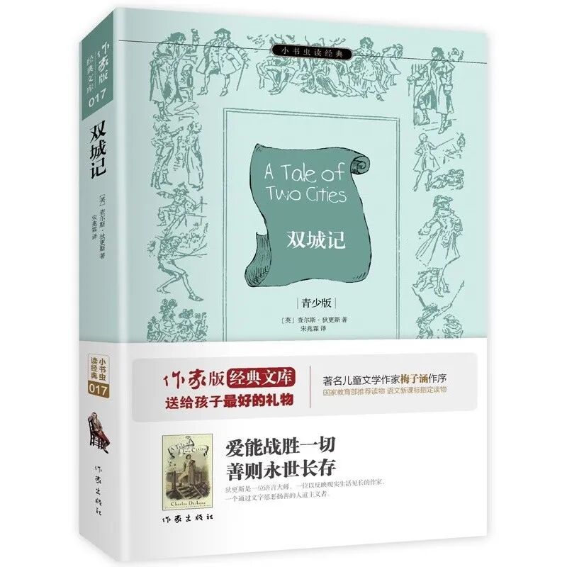 《双城记》是一部以法国大革命为背景的长篇历史小说,是世界文学经典名著之一。故事将巴黎、伦敦两个大城市连结起来,围绕着曼马内特医生一家和以德法日夫妇为首的圣安东尼区展开。小说主要传达了“鲜血无法洗去仇恨,更不能替代爱”的主旨——贵族的暴虐对平民造成的伤痛不会因为鲜血而愈合,平民对贵族的仇恨也无法替代对已逝亲人的爱。